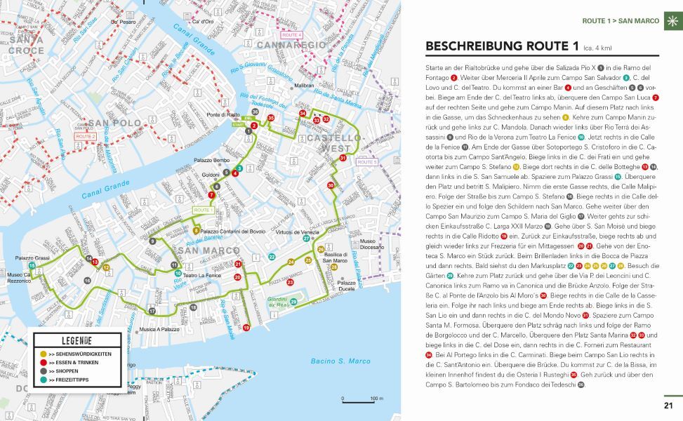 „Letztes Jahr hatten wir bereits den Florenzführer aus dieser Reihe. Die letzten Märztage ging es nun nach Venedig und trotz vorhandener Reiseführer, musste ein „happy time guide“ mit. Das Besondere an dieser Reihe ist, dass Einheimische die Highlights ihrer Stadt teilen. Wir haben wirklich viele besondere, teils sehr versteckte Winkel entdeckt und auch in Restaurants gegessen, in welchen wir zwischen Arbeitern und älteren Herrschaften das beste Essen zu günstigen Preisen genießen durften. Auch sind besondere Geschäfte aufgeführt, welche zu einem Bummel einladen. Die Reiseführer sind in verschiedene Routen eingeteilt. Jede Route ist auf einer detaillierten Karte eingezeichnet, auf der die Sehenswürdigkeiten, Geschäfte, Restaurants etc. verschiedenfarbig mit Nummern markiert sind und im Anschluss kurz beschrieben werden. Wenn Sie die „wahre“ Stadt erleben möchte, kann ich Ihnen nur empfehlen, beim nächsten Städtetrip einen „happy time guide“ mitzunehmen!“